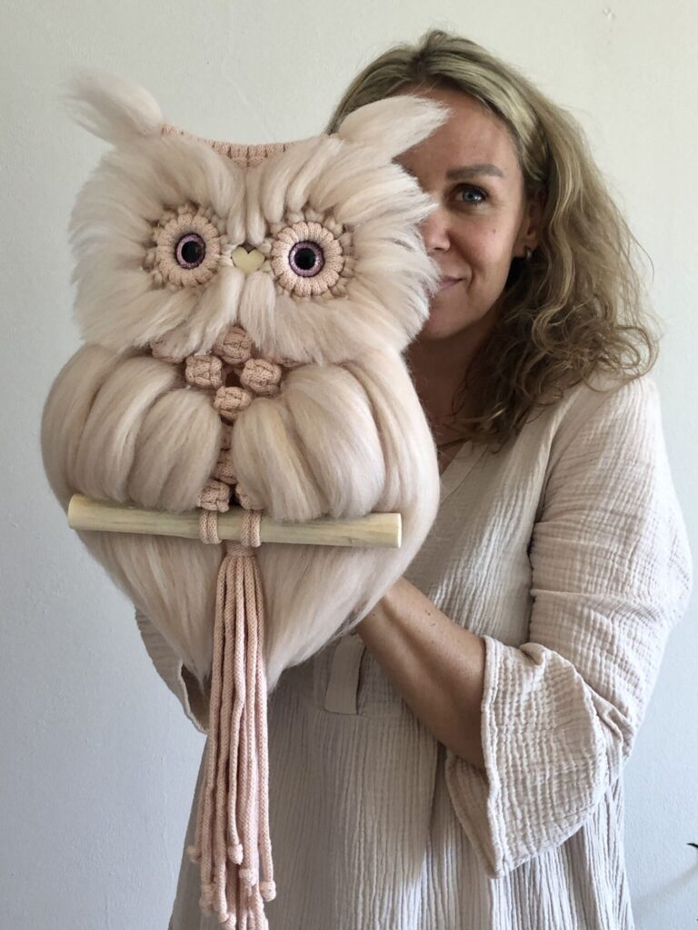 Dekorace k zavěšení Velikost těla 25 cm, celková délka s ocáskem přibližně 50 cm. Materiál: příze, ovčí rouno